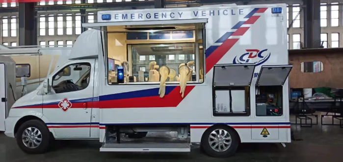 该款移动核酸检测采样车配备了专业的设备,搭载了生物样本存储柜,和内部环境控制系统(包括内部温度控制、空气净化、病毒消杀等功能),采用厢内部微正压环境设计,能有效防止车外病毒进入采集工作舱。